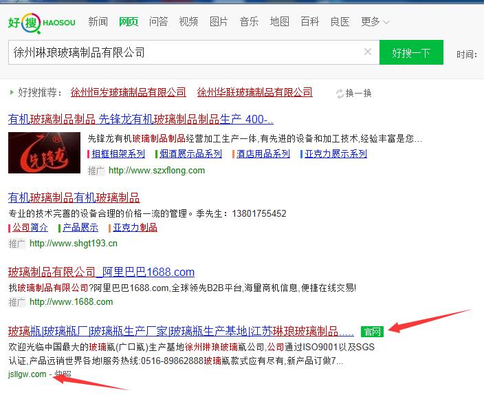 第二種方法就是打開360綜合搜索或者好搜搜索引擎,搜索:徐州穩(wěn)健玻璃制品有限公司,顯示官網(wǎng)的就是公司總部網(wǎng)站,如圖